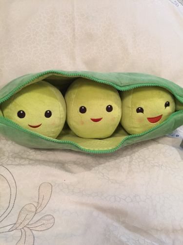 หมอนตุ๊กตาถั่วลันเตา 3 เม็ดในฝักสีเขียว ใบหน้ายิ้มน่ารัก
