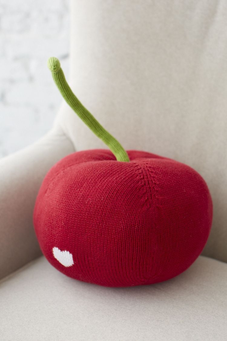 หมอนตุ๊กตารูปเชอร์รี่สีแดงสด มีก้านสีเขียว ผ้านุ่ม น่ารัก